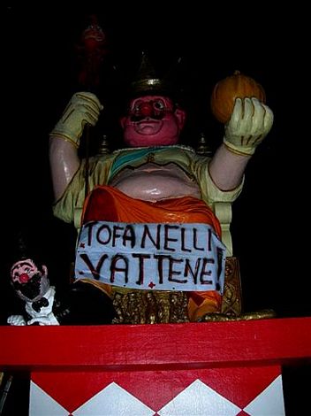 - alla statua di Sua maestà Carnevale dietro la Cittadella è stato attaccato uno striscione con scritto "Tofanelli Vattene"