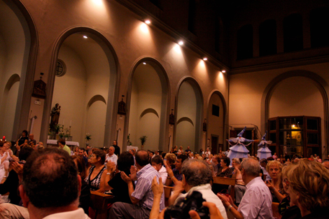 vuota? ma quale chiesa ha visto Luca A.? era piena in tutte le panche e c'erano persone sedute sugli scalini degli altari laterali, nonostante il gran caldo!