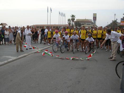Il nastro su cui erano collocate diverse bandierine italiane, è stato tagliato dal sindaco Luca Lunardini ed in testa alla corsa erano presenti alcuni bambini in bicicletta.