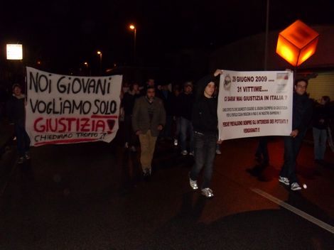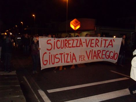 Disastro a Viareggio lunedì 30 novembre 2009 9Ancora una volta ieri sera Viareggio ha ricordato le sue vittime, in un silenzioso e purtroppo sempre più ridotto corteo partito dalla stazione e giunto in via Ponchielli, con passaggio dal sottopasso della stazione.