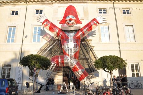 Carnevale venerdì 22 gennaio 2010 22Ha fatto la sua comparsa in piazza Mazzini di fronte alla Fondazione Carnevale il grande Burlamacco in plexiglas realizzato da Emilio Cinquni.
