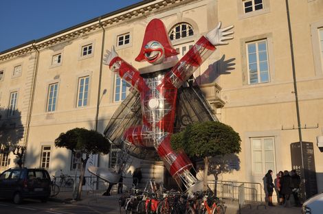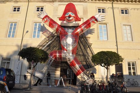 Il carro del Burlamacco, carro di apertura del Carnevale 2009, venne ideato e realizzato per poter essere riutilizzato come possibile addobbo di qualche angolo della città, e dopo essere stato vergognosamente posteggiato in un campo per molto tempo (Leggi l'articolo), finalmente riempe e colora la Pizza principale della città