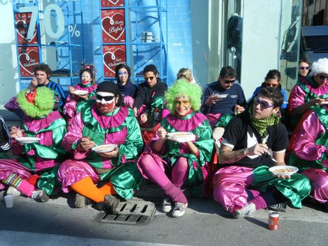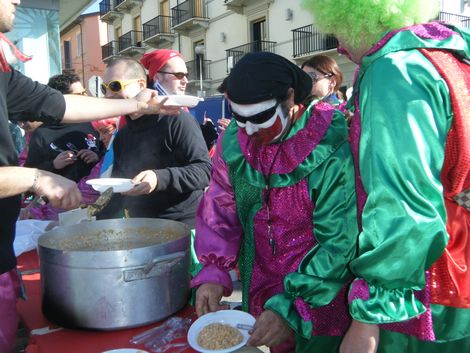 Davanti al carro fervono i preparativi, partendo dal trucco. L'ora del pranzo, poi, è vero e proprio rito, ormai da 11 anni: cucinato sul momento, in pentoloni misura caserma - ieri nel menù dello chef c'era un ottimo risotto di mare - e consumato davanti al carro, seduti in terra, dove capita. Ma rigorosamente tutti insieme.