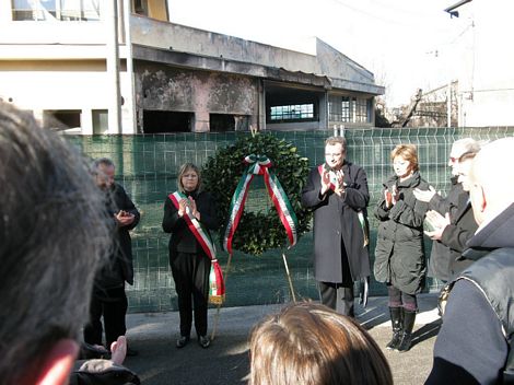 La comunità di San Benedetto del Tronto depone una corona di fiori in via Ponchielli