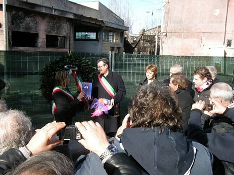 Durante una breve ma significativa cerimonia, la delegazione sambenedettese ha deposto una corona di fioni in via Ponchielli, per commemorare ed onorare le vittime del 29 Giugno.