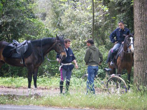 I due cavalieri della Polizia di Stato, di stanza a Firenze, alle Cascine, fanno servizio nella zona del parco sei giorni su sette, alternandosi in turni di sei ore, quando di mattina e quando di pomeriggio. Come ieri, quando lungo sia il viale dei Tigli, che nella macchia, erano in servizio l'assistente capo Claudio Longhi e l'agente scelto Daniel Biagiotti, in sella a Van Gogh e Orfee.