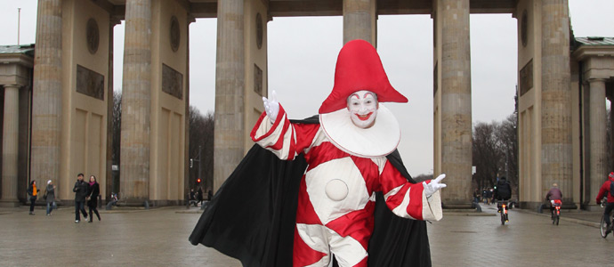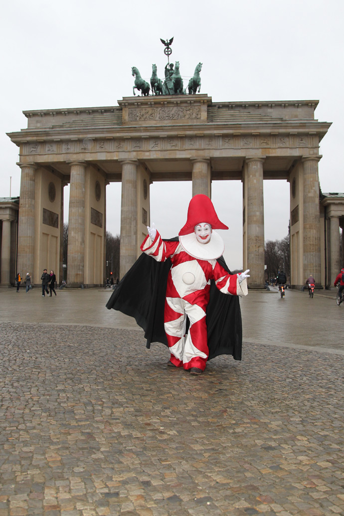 Carnevale sabato 5 febbraio 2011 4In occasione della Conferenza Stampa di presentazione del programma del Carnevale di Viareggio 2011, un’ iniziativa per illustrare alla stampa tedesca il fitto calendario di eventi che si susseguiranno a partire dal prossimo 20 febbraio e per anticipare già a giornalisti e tour operator l’edizione 2012 della manifestazione viareggina, Burlamacco si lascia fotografare a Berlino sotto la porta di Brandeburgo.