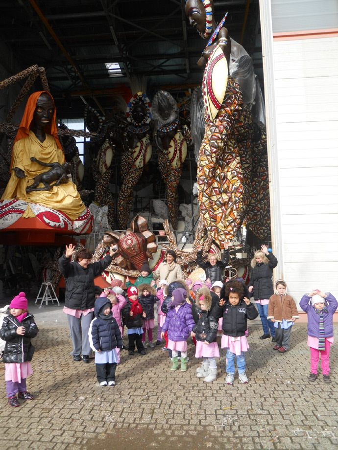 Ma nel frattempo, accompagnati dalle loro maestre, i “pulcini” del primo anno della scuola materna Basalari, ieri mattina, erano in visita agli hangar del Carnevale.