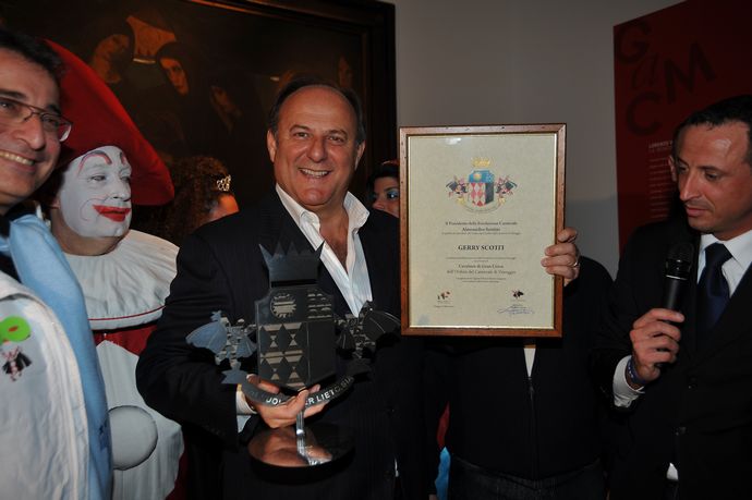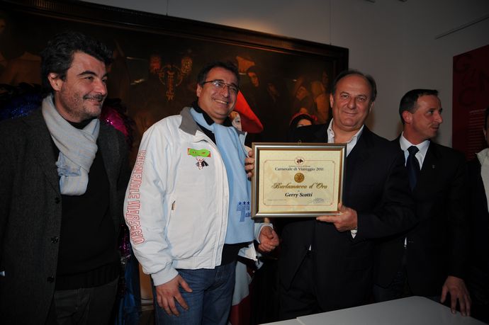 Il celebre volto televisivo ha ricevuto questa mattina non solo il prestigioso riconoscimento della Fondazione Carnevale, Burlamacco d’Oro, ma è stato anche insignito del titolo di Cavaliere del Carnevale di Viareggio, un Premio istituito dal presidente della Fondazione Alessandro Santini come riconoscimento a personaggi del mondo della cultura o dello spettacolo amici di Viareggio; e proprio Alessandro Santini ha fortemente voluto che fosse proprio Gerry Scotti il primo personaggio ad esserne insignito con il massimo grado di Cavaliere di Gran Croce dell’Ordine del Carnevale di Viareggio.