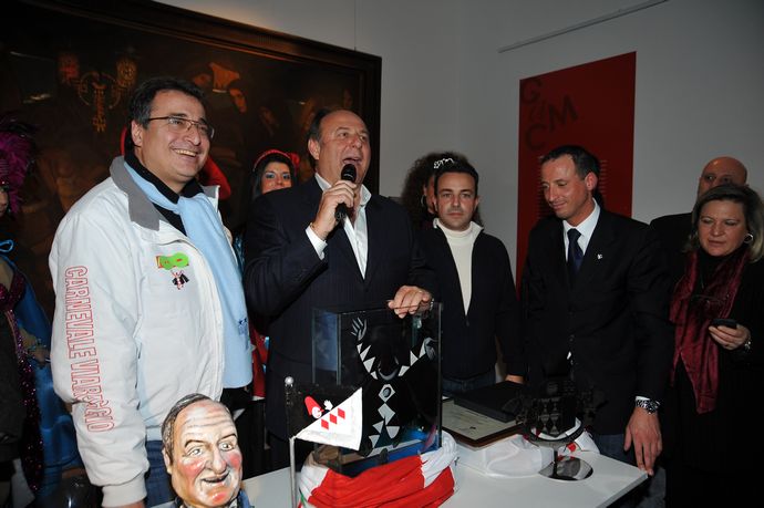 Consegnata anche una miniatura in cartapesta realizzata dal mascheratista Alessandro Servetto e un'opera in vetro raffigurante Burlamacco, la nostra maschera ufficiale.