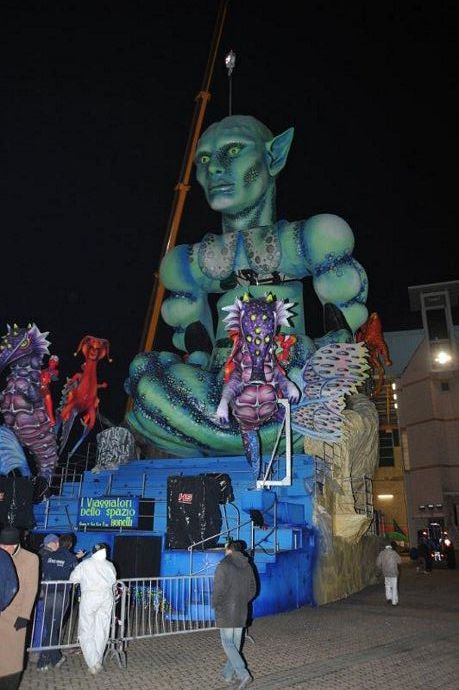 Ieri, nel tardo pomeriggio alla cittadella del Carnevale, hanno iniziato a svelare i segreti del carro posizionando persino il volto dell'alieno.