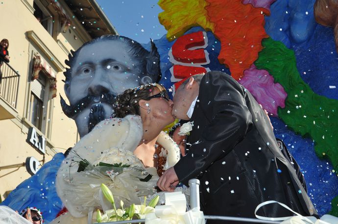 La passione per il Carnevale è tale e tanta che Roberto Poli viareggino e maschera ufficiale del Rione Vecchia Viareggio ha chiesto alla sua futura moglie Ilaria Cordoni di Pisa di pronunciare il si a bordo di un carro del Carnevale di Viareggio. Ilaria ha assecondato la richiesta del futuro marito e ha accettato di convolare a nozze tra coriandoli e stelle filanti.