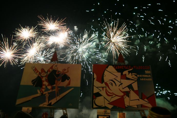 E' stata una chiusura esplosiva quella che ha decretato la fine del martedì grasso a Viareggio.