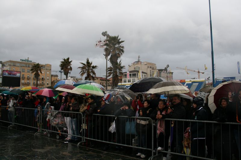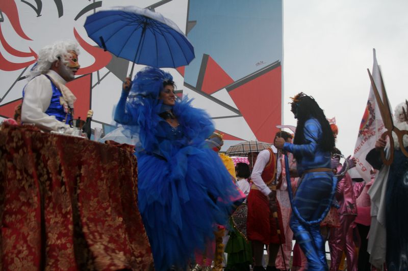 Una giornata decisamente sfortunata, ma che non si butta giù di morale cercando di recuperare un po' di buonumore grazie alle maschere originali e colorate che stanno animando il palco.