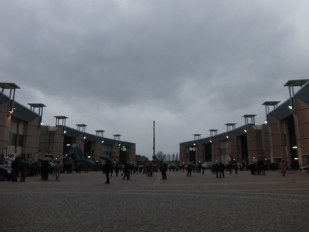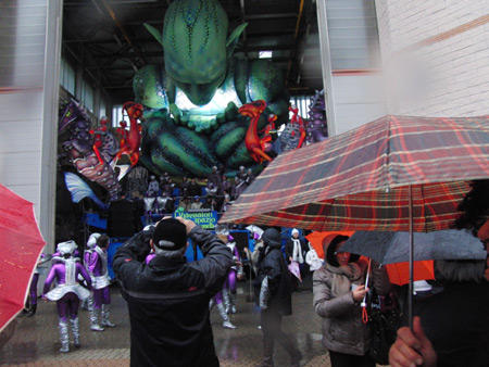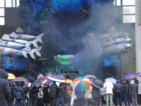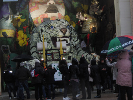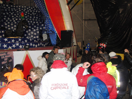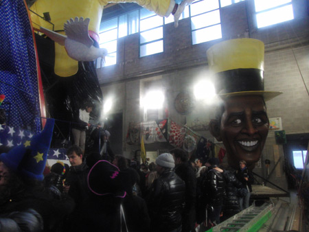Carnevale domenica 13 marzo 2011 1Tanti turisti alla Cittadella del Carnevale osservano stupiti i giganti di cartapesta dentro gli hangar.