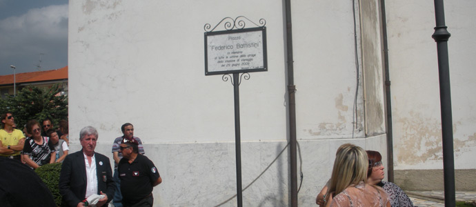 ''In questa targa c'e' l'abbraccio di tutta la nostra comunita' alla famiglia di Federico e alle vittime di Viareggio'', ha detto il sindaco di Seravezza Ettore Neri. Con tanta voglia di giustizia nel cuore, rimarcata dal presidente della Provincia di Lucca Stefano Baccelli: ''Siamo convinti - ha affermato - che in quella tragedia ci siano state responsabilita' umane''.