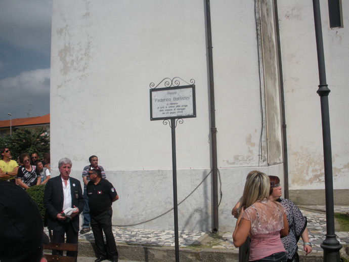 Da bambino Federico, morto a 32 anni, andava spesso a giocare in quella piazzetta che ora porta il suo nome, per ricordare lui e tutti coloro che hanno perso la vita nell'esplosione del 29 giugno 2009. Forte l'emozione per mamma Luciana e papa' Pietro: fino al 2005 Federico aveva vissuto nella frazione seravezzina, poi aveva sposato Elena, anche lei uccisa dal fuoco ed insieme erano andati ad abitare a Viareggio, in via Porta Pietrasanta. ''Mi ero preparata un discorso - ha detto Luciana Beretti, davanti alla folta platea riunita nella piazzetta - ma l'emozione mi ha fatto dimenticare tutto. Grazie a tutti per essere qui''. Alla cerimonia hanno partecipato anche alcuni autisti della Clap, colleghi di lavoro di Federico, i rappresentanti di diverse associazioni di volontariato ed i contradaioli in costume d'epoca.