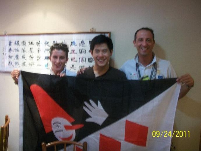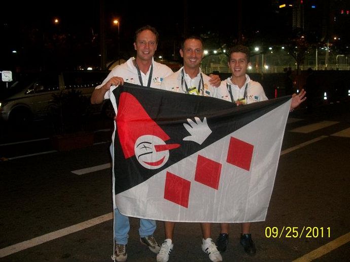 Il Presidente ha inoltre sfoggiato con orgoglio la bandiera del nostro Carnevale, e la maglietta contro le aste delle concessioni demaniali, ed è stato accompagnato a Singapore dal consulente Andrea Farci e all’ingegner Paolo Polvani.