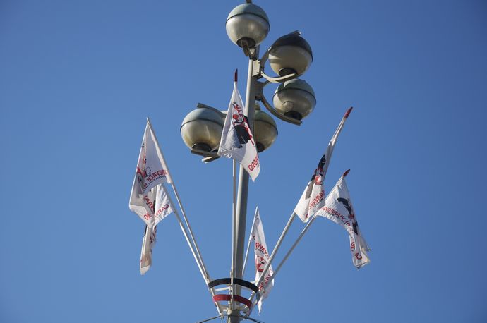 Installate anche quasi tutte le bandiere sui pennoni del lungomare.