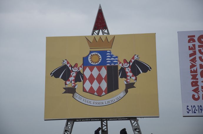 Desidero precisare e sottolineare che lo stemma con la corona è opera originale di Uberto Bonetti, ripreso da un quadro presente da sempre all'interno della Fondazione Carnevale di Viareggio, nell'Ufficio di Presidenza, opera per di più certificata dalla figlia del Maestro, Adriana Bonetti.