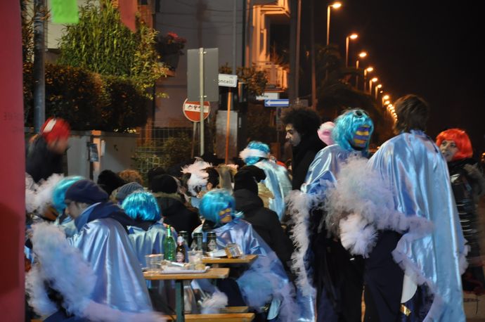 Dopo una giornata che ha visto sfilare i giganti di cartapesta sui viali a mare, sono stati diversi i coraggiosi che nonostante il freddo hanno mangiato e ballato per le strade del quartiere Marco Polo.