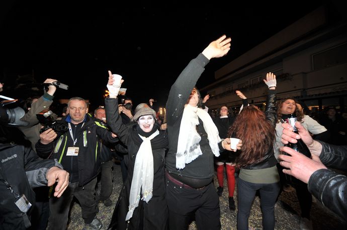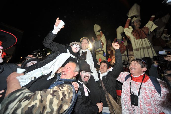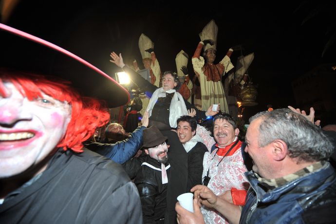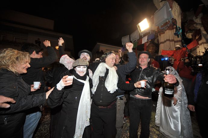 La coppia di origini francesi Gilbert Lebigre e Corinne Roger, con il carro di prima categoria “Santo Subito” si è aggiudicata la vittoria: acclamata, festeggiata e applaudita da tutti i presenti, la costruzione vedeva protagonista Silvio Berlusconi proclamato “Santo Subito” dai leader politici internazionali nei panni di cardinali.