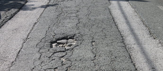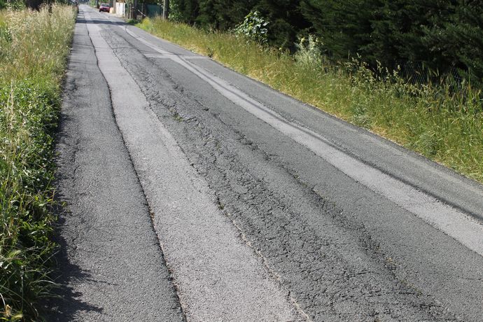 Il problema è che in alcuni tratti la parte centrale del manto stradale è più alto rispetto ai lati, che probabilmente, a causa dei camion che passano regolarmente da li, hanno ceduto...