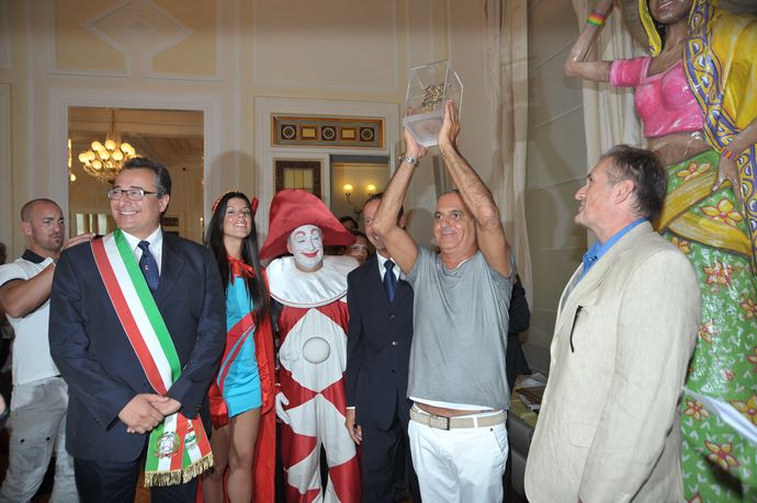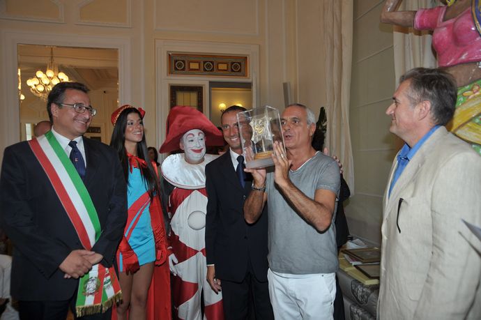 Carnevale domenica 15 luglio 2012 0Coriandolo d’oro 2012 a Giorgio Panariello che questa mattina è diventato anche anche Cittadino onorario della città di Viareggio.