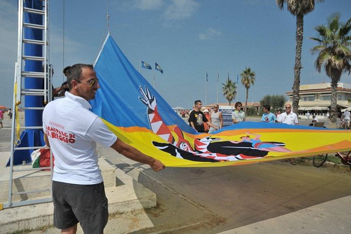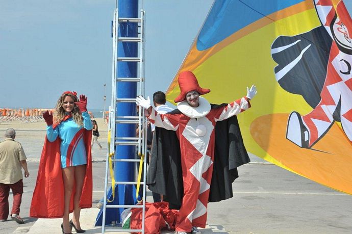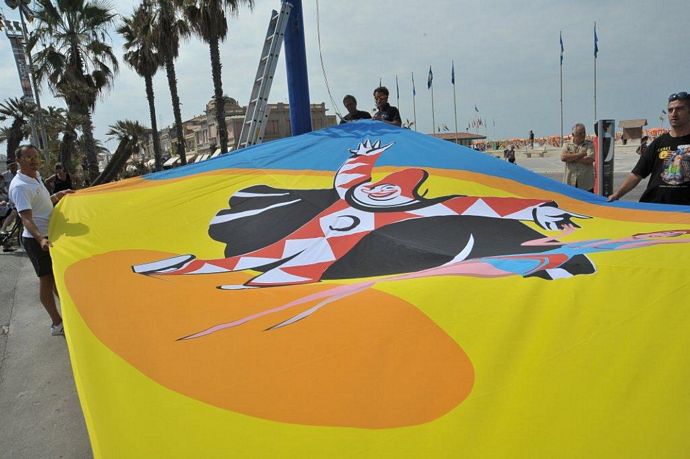 Inaugurato simbolicamente oggi il Carnevale estivo 2012. In attesa della sfilata notturna dei giganti di cartapesta, che si svolgerà martedì 14 agosto dalle ore 21 sui Viali a Mare di Viareggio, questa mattina è stata issata la bandiera ufficiale della manifestazione.