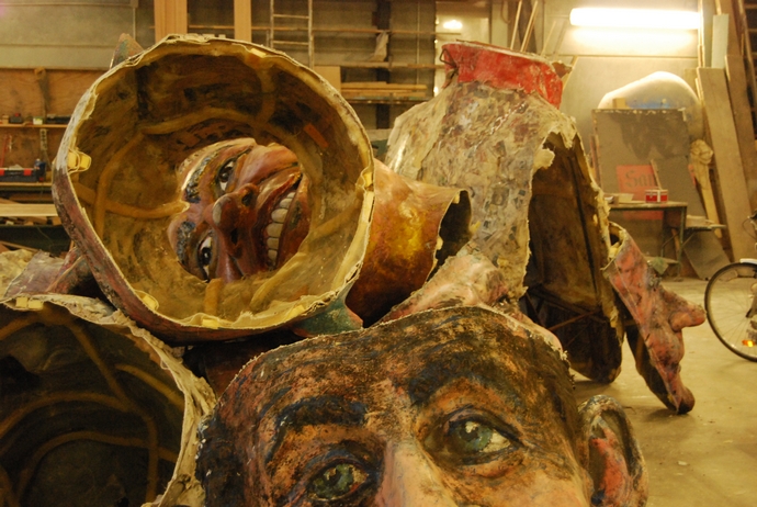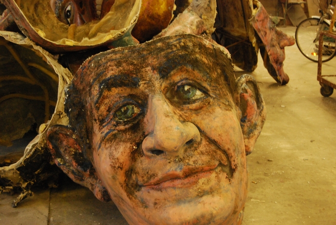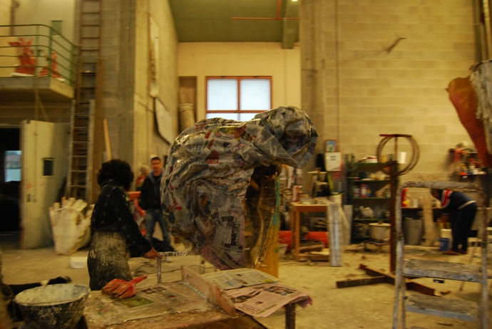 Eh sì, i vincitori del Carnevale 2012 di prima categoria hanno ancora l'hangar semi deserto. Iniziano ad arrivare i materiali, in primis il ferro, e poi il giunco, la creta, la carta, ma per il momento si sta lavorando per... lavorare!