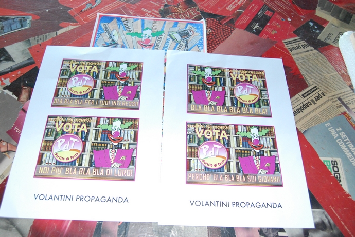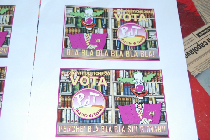 Tutti i figuranti saranno naturalmente impegnati nella campagna elettorale promossa da Edoardo per far eleggere in Parlamento il suo pagliaccio coloratissimo e simpaticissimo, l'incarnazione esatta del bla bla bla bla bla bla bla bla .....