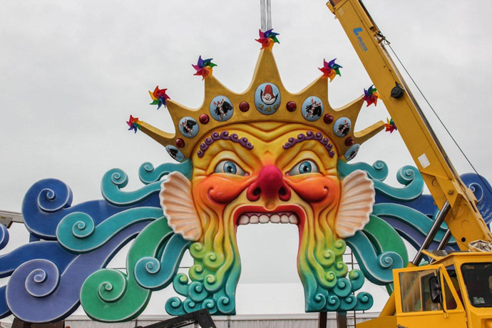 Il gigantesco Re Carnevale di Politi e Borri si posiziona sul Palcoscenico delle maschere!. LE FOTO!