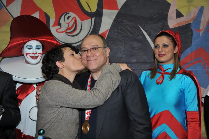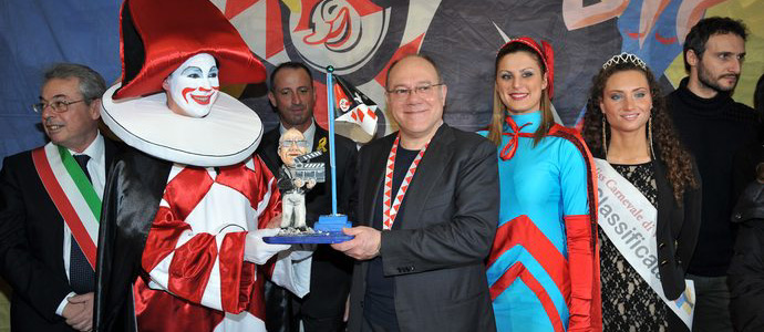 L'attore e regista romano ha ritirato personalmente il riconoscimento questa mattina a Palazzo delle Muse, in occasione del primo corso mascherato e ha accolto con simpatia la caricatura realizzata in cartapesta dai Fratelli Servetto e il Burlapremio realizzato da Eleonora Francioni: una medaglia in microfusione con l’immagine della maschera ufficiale del Carnevale viareggino.