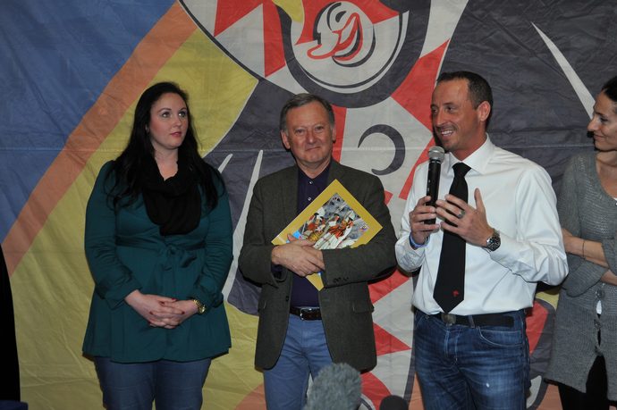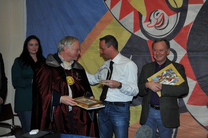 Presente la delegazione della Città di Losanna e del suo Carnevale. A Viareggio Claude Bettens, Président de la Confrérie du Soleil de Lausanne, Président onorario du Carnaval de Lausanne.