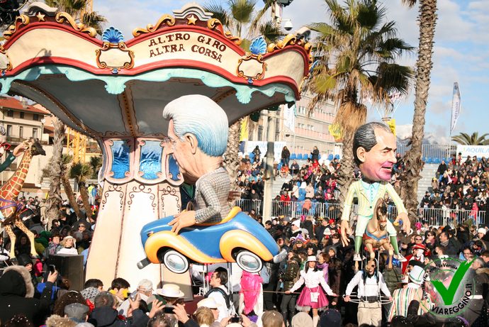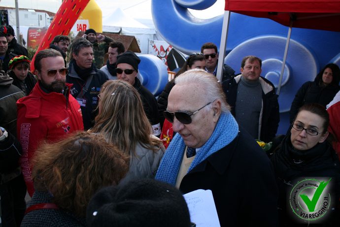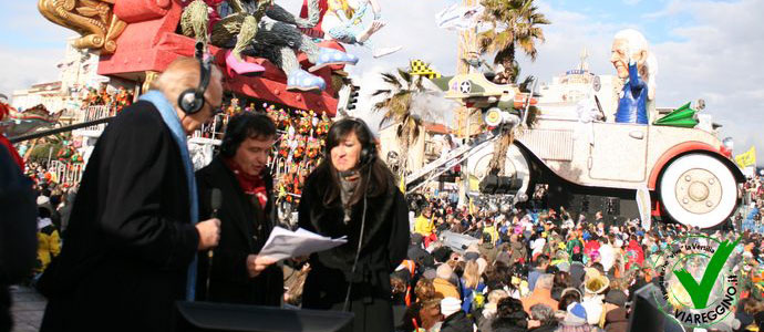 Ospiti della trasmissione Pippo Baudo e l’imitatrice Emanuela Aureli. Entrambi, rimasti particolarmente colpiti dalle dimensioni e dalla bellezza delle costruzioni allegoriche, hanno avuto parole di elogio per i maestri carristi. Emanuela Aureli non ha nascosto la sua commozione, fino alla lacrime, davanti al carro di Franco Malfatti che tratta il tema dell’affollamento delle carceri. “Quel carro mi ha veramente commosso – ha detto – per il tema e per la bella colonna sonora”. Ai due conduttori Hagge e Monechi anche la sorpresa delle loro caricature in cartapesta, realizzate da Luca Bertozzi.