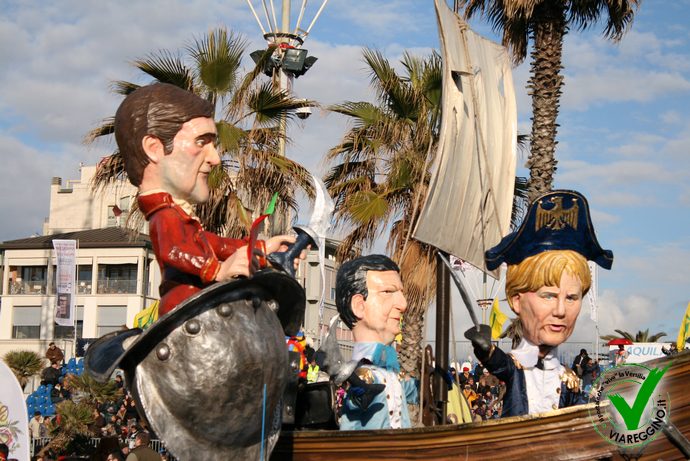 Carnevale martedì 12 febbraio 2013 2Burlamacco ha fatto il miracolo anche stavolta ed ha sconfitto il maltempo. Il Terzo Grande Corso Mascherato del Martedì Grasso ha sfilato sotto il sole. Ospite della giornata è stato il mattatore della televisione italiana Pippo Baudo, al quale il Presidente della Fondazione Carnevale Alessandro Santini ha conferito il titolo di Cavaliere di Gran Croce dell’Ordine del Carnevale di Viareggio.