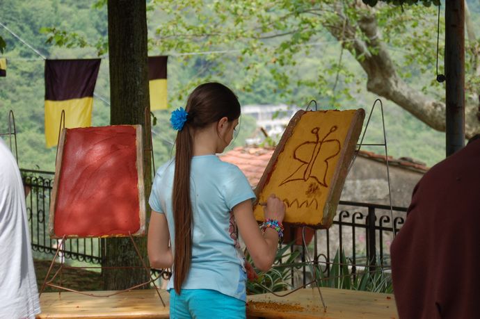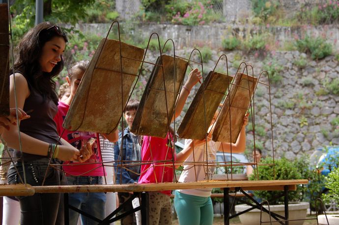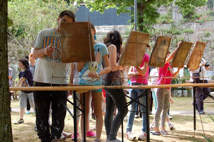 Intanto oggi pomeriggio, sabato, i bambini si sono impegnati in opere sugli embrici.
