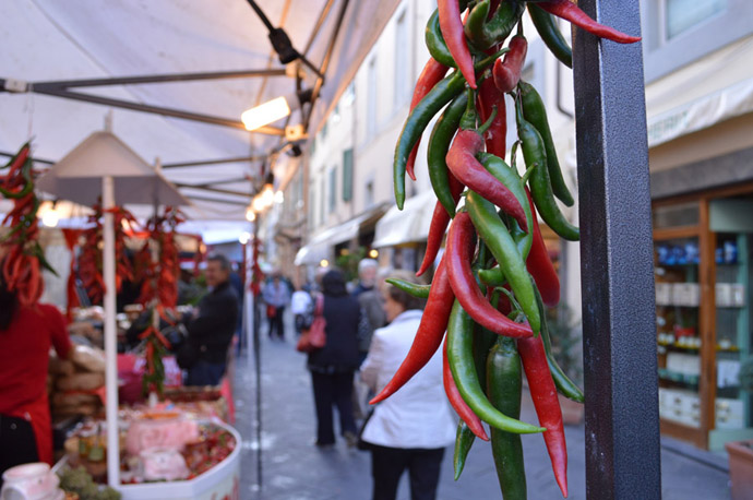 Si è aperta con immediato successo di pubblico la ‘Festa Pic’, che colora il centro di Camaiore con tante varietà di peperoncino e delizie per il palato, fino alla sera di domenica 13 ottobre. Gettonatissimo il mercato del piccante e dei prodotti del territorio, e molto apprezzata l’esposizione dei peperoncini dal mondo di Massimo Biagi, affiancata dallo spazio riservato agli hobbisti. Accanto agli stand gastronomici però non manca l’appuntamento con l’arte: nel Palazzo del Vicario la rassegna “Pep-art” ha calamitato numerose visite (con tanto di tappeto di… peperoncini), così come la mostra di opere che fanno parte del concorso “PeperArt” all’interno del Teatro dell’Olivo. La firma del mitico illustratore satirico Altan ha poi graffiato lo sguardo dei visitatori di Palazzo Tori, in via Vittorio Emanuele, con disegni e vignette storiche con l’umorismo ‘piccante’ del maestro. Durante la giornata, per intrattenere e sorprendere cittadini e turisti, lo show tinerante di Alberto Bertolino e l’Organetto di Barberia, la Compagnia di Musica e Danza Meridionale ‘Allumari Sud’ e il suggestivo ‘Chili Fire Show’ di Belenia De Rattis, senza contare i ‘Sonetti Piccanti & Fisarmonica’ a cura di Rebecca Palagi e Daniele Luti. Per i più picoli le marionette de ‘Il Gatto con gli Stivali’.
