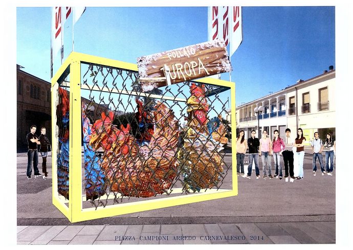 In piazza Campioni saranno sistemate le galline che erano di contorno sul carro di Carlo Lombardi dello scorso anno. In una apposita struttura verrà ricreato il "pollaio Europa" che fu protagonista di quell'allegoria.