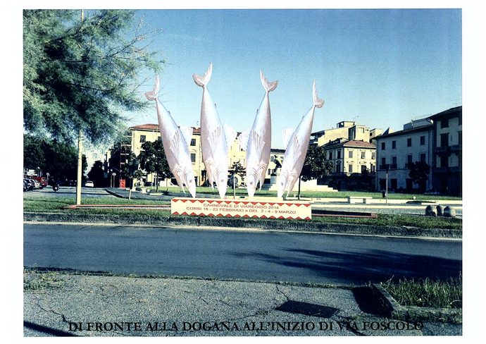 Quattro pesci argentati in cartapesta, che facevano parte del carro di Franco Malfatti del 2011, saranno sistemati nello spartitraffico tra la Dogana e il Canale Burlamacca, all'inizio di via Foscolo. Simbolicamente celebreranno l'elemento marino e la pesca, essenziali per Viareggio.