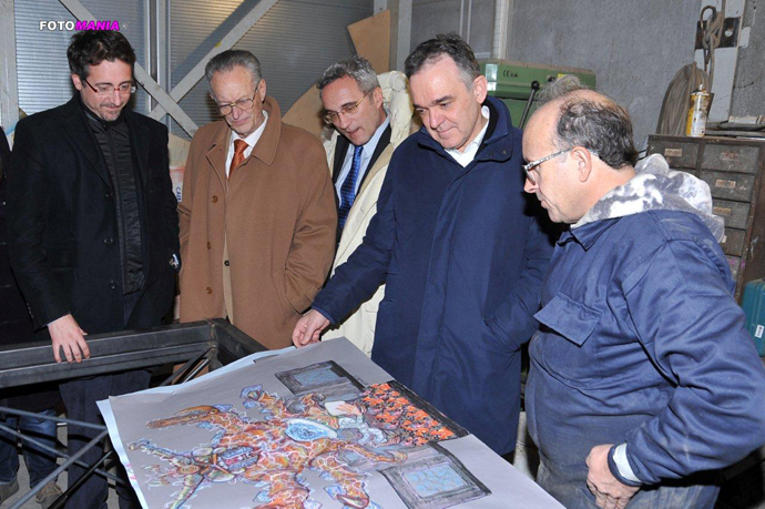 Carnevale venerdì 20 dicembre 2013 0"Rispondo volentieri al vostro invito e verrò ad assistere ad una delle sfilate del Carnevale 2014. Ho avuto modo di constatare la vostra strordinaria abilità di artisti e di costruttori, capaci di dare vita e colori ad un Carnevale che non ha uguali in Italia". Il presidente della Regione Toscana, Enrico Rossi, ha risposto positivamente all'invito che gli hanno rivolto il sindaco di Viareggio, Leonardo Betti, ed i carristi con i quali si è incontrato presso la Cittadella del Carnevale. Accompagnato dal consigliere di amministrazione della Fondazione Carnevale, Renato Baldi, ha visitato dapprima il capannone di Fabrizio Galli, che sta preparando il suo "Non entrare in quel portale", il carro di prima categoria dedicato ai pericoli di un troppo facile accesso ed uso della rete informatica, dal cyber bullismo, alla dipendenza, alla pornografia, alla pedofilia. Galli ha detto al presidente che il Carnevale è una manifestazione culturale e come tale va riconosciuta. Ha specificato che i carristi danno lavoro a circa 100 persone e che redistribuiscono in Versilia ciò che ricevono perchè è qui che acquistano ciò che serve loro per realizzare i loro capolavori di artigianato artistico di eccellenza. Anche Alessandro Avanzini, con il suo carro "La rete" si è dedicato al futuro e sta realizzando un carro sormontato da una sorta di grosso ragno dai movimenti spettacolari. Avanzini ha detto che serve una scuola che insegni ad utilizzare la cartapesta anche con soluzioni innovative e ha spiegato che la politica sarà pressochè assente dai carri di prima categoria "perchè non tira più". L'ultima visita il presidente l'ha fatta a "Love revolution", il carro che i fratelli Umberto e Stefano Cinquini hanno dedicato a quella che hanno definito l'ultima rivoluzione possibile. Positivo il loro messaggio, con un John Lennon che passa dall'Help allo strawberry field, il campo delle fragole segno di ottimismo, accompagnato dal simbolo dell'utopia, un ciclista che pedala tra le nuvole. Alla fine Umberto ha regalato al presidente un dolce e ottimistico biscotto al burro con la scritta Love revolution di zucchero colorato. Nel pomeriggio il presidente Rossi aveva visitato anche il Teatro pucciniano di Torre del Lago dove si era incontrato con i sindaci della zona e con il presidente del Parco naturale di Migliarino San Rossore e Massaciuccoli. E' stata anche l'occasione per sottolineare la necessità di dare il via ai lavori di derivazione del Serchio per portare acque pulite nel lago di Massaciuccoli, un'opera da 20,6 milioni di euro già finanziata ma non ancora iniziata.