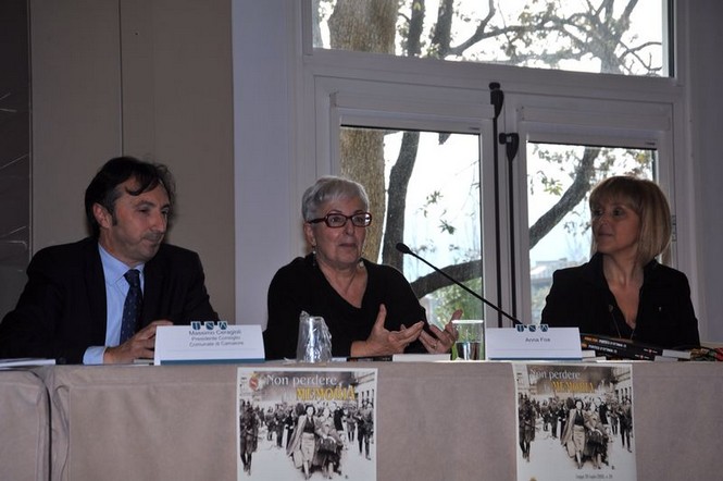 Il sindaco Alessadro Del Dotto, l’assessore all’Istruzione Sandra Galeotti e il Presidente del Consiglio Comunale Massimo Ceragioli hanno introdotto il lungo e appassionante intervento della scrittrice Anna Foa, autrice del libro “Portico D’Ottavia 13 - Una casa del ghetto nel lungo inverno del ‘43”. Un testo che racconta, attraverso aneddotti, testimonianze ed esperienze di vita della stessa autrice, la storia degli abitanti dell’edificio che si trova all'ingresso del quartiere ebraico di Roma, dove il 16 ottobre del 1943 i nazisti arrestarono un terzo dei suoi abitanti, tra i più poveri della comunità. Un tassello della tragica storia degli ebrei romani, i cui deportati furono oltre duemila.