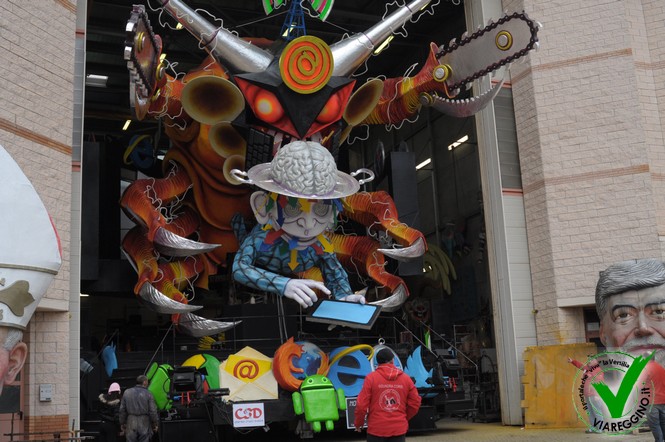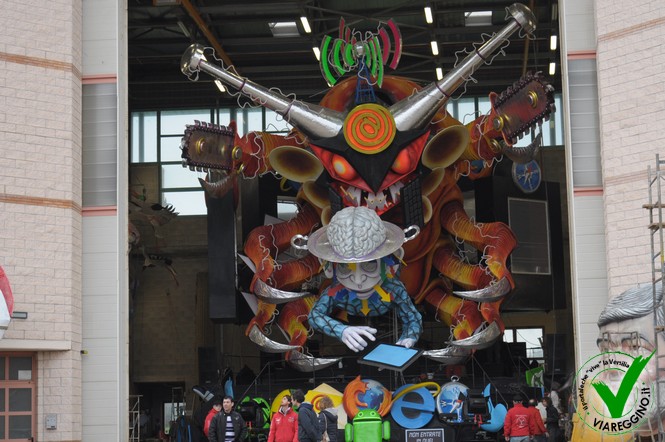 Fa freddo in Cittadella, alcuni maestri sono nervosi, altri invece, sereni perchè il lavoro è stato completato per tempo e non ci sono stati intoppi. Altri ancora scherzano con le proprie maestranze, con gli amici di sempre, con coloro che prima di truccarsi e vestirsi per salire sul carro passano a vederlo... perchè sì quello che conta è.. l'effetto che fa fuori dall'hangar.