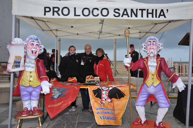 Carnevale domenica 16 febbraio 2014 0Il Carnevale Storico di Santhià, dopo aver partecipato all'apertura di ieri, accompagnato dalla Banda Musicale Cittadina, il gruppo Tamburi e le Majorettes, è stato inserito nel programma ufficiale del Carnevale di Viareggio come ospite della prima sfilata di carnevale.