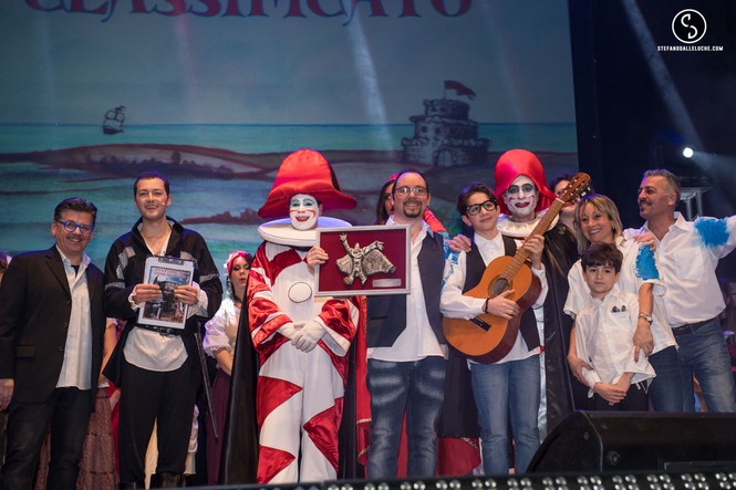 Presente in sala anche la Presidente della Fondazione Carnevale, Marialina Marcucci, insieme al vice-presidente Marco Szorenyi, che si sono intrattenuti in divertenti siparietti con i conduttori del Festival.