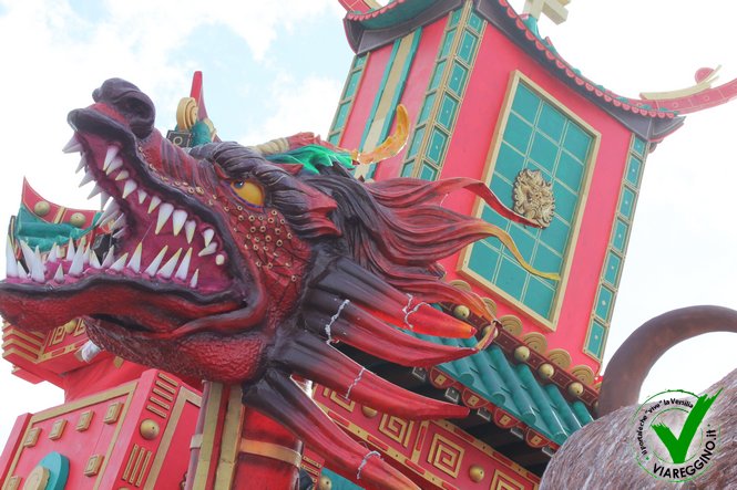 Un carro assolutamente imponente e spettacolare, con il fumo che esce in modo alternato dalle narici, i tantissimi movimenti dell'animale e dei draghi che escono dalla tipica pagoda cinese, le coreografie e le musiche.