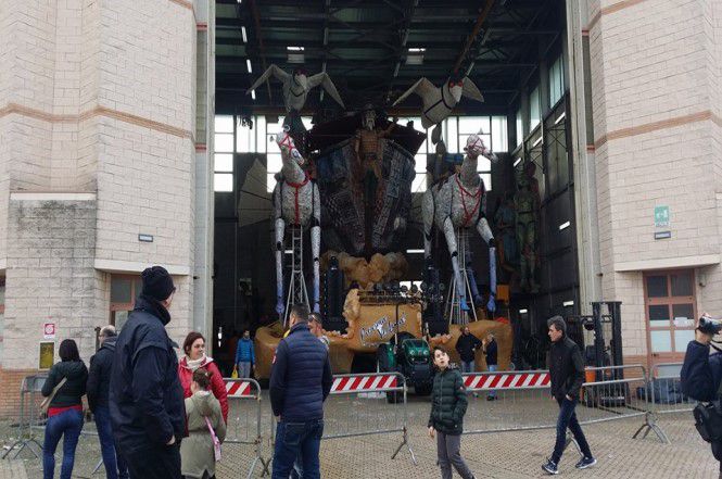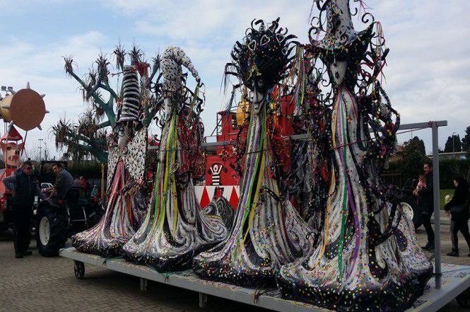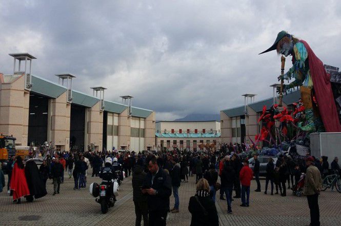 E quando l'ultima costruzione avrà lasciato l'hangar se andrete in città vedrete un lento e silenzioso sciame di giovani e non che vestiti tutti uguali raggiungono il proprio carro a piedi e in bicicletta: sono le centinaia di festanti figuranti che saliranno sul carro e lo animeranno insieme a coloro che invece da terra daranno vita all'altro grande spettacolo.