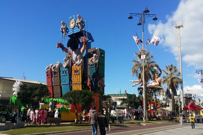 La giornata è splendida e non resta così che attendere il triplice scoppio che darà il via ad una nuova parata dei grandi carri e delle mascherate.