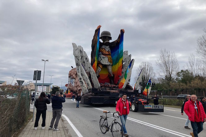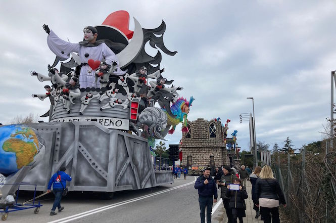 Iniziata la "processione" per portare carri e mascherate sui viali a mare tra nuvole minacciose