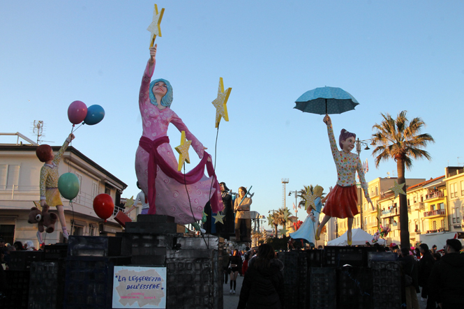 I personaggi durante la sfilata sono proprio come nel bozzetti: leggiadri nei movimenti e dal carattere libero e privo di ogni preoccupazione. Non va a tutti a genio dover guardare di parecchio in alto per ammirarli, ma la maggior parte ha apprezzato l’originalità.